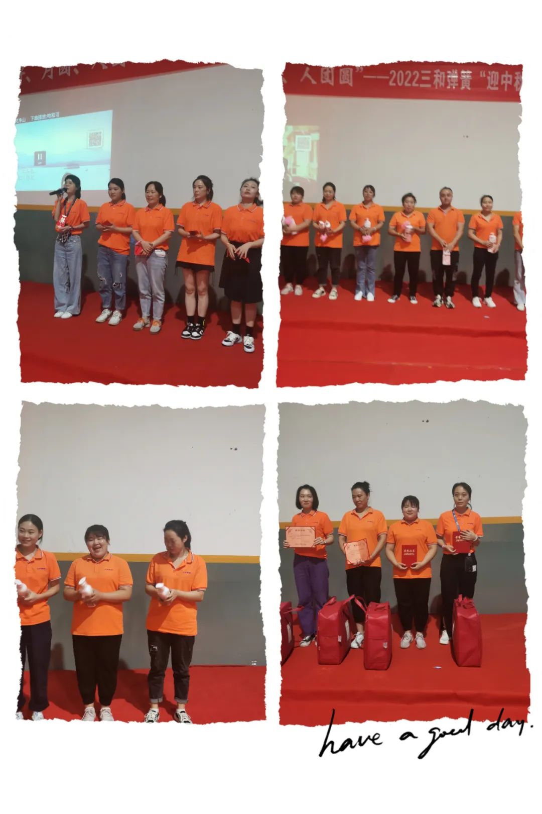 晚上七點(diǎn),中秋晚會(huì)在三和麥霸的歌聲中拉開(kāi)了序幕,下午比賽的名次,八月工分的績(jī)效獎(jiǎng)金,在節(jié)目的穿插中,一一展現(xiàn)。美妙的歌聲,豐富的獎(jiǎng)品,拿到獎(jiǎng)金時(shí)的喜悅,讓現(xiàn)場(chǎng)氣氛熱烈,掌聲雷動(dòng)。在頒發(fā)特等獎(jiǎng)時(shí),一首《千千闕歌》讓氣氛達(dá)到了高潮,之后更多的伙伴們展示了他們的才藝,最后在大家的依依不舍中所有的伙伴們一起高唱《明天會(huì)更好》結(jié)束了我們的晚會(huì)!
